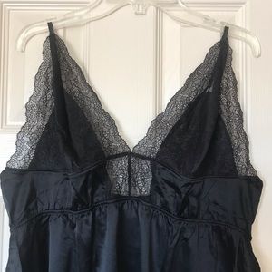VS black satin & Chantilly lace plunge babydoll lingerie set