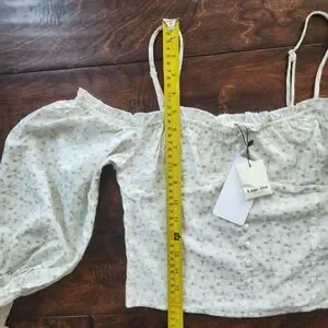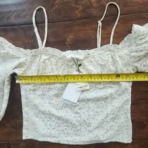 Line & Dot Cream Floral Off-Shoulder Blouse Peasant, Cottagecore, Boho Praire