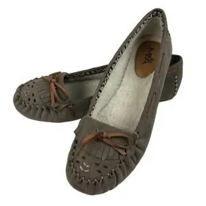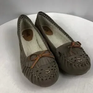 Girl Mia Women Sz 9M Blanche Taupe Leather Suede Slip On Flats Loafers Moccasins - Discontinued