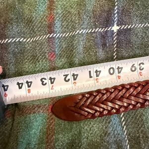 This sophisticated belt features a rich brown leather exterior complemented by gold accents, offering a timeless and versatile style. The woven texture adds a unique touch, making it a standout accessory for any occasion. Its durable construction ensures it will be a reliable companion for years to come.