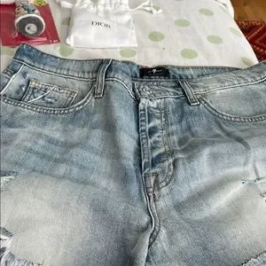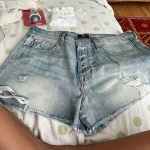 Trendy faded blue jean shorts. Comfortable fit. Ideal for everyday style.