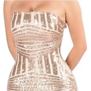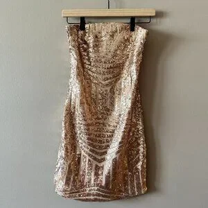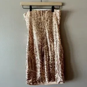 Women's S Fashion Nova Rose Gold Body-con Sequin Dress Strapless Fitted Bodycon