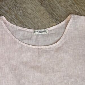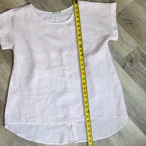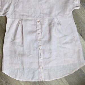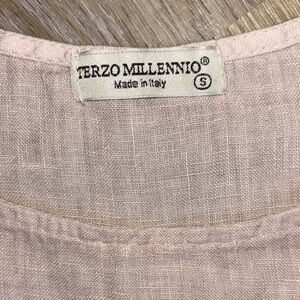 Terzo Millennio Top Small Beige 100% Linen Button Back Hi Low Hem Pullover Shirt