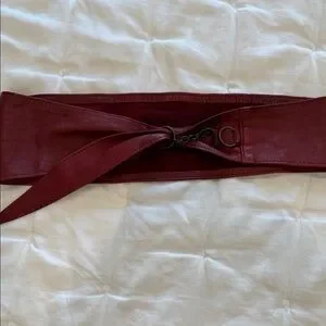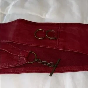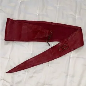 Add a touch of sophistication to your outfit with this elegant red leather belt. Perfect for any occasion.Small