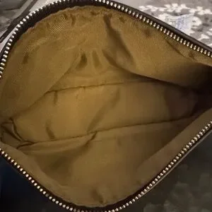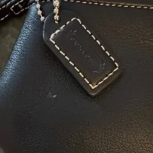Elegant black leather toiletry bag by Coach. Features a sleek design with a classic logo detail. Ideal for travel essentials. One small callout pictured otherwise new without tags.