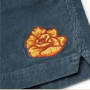 Stylish dark gray shorts with vibrant orange embroidery. Perfect for casual outings.