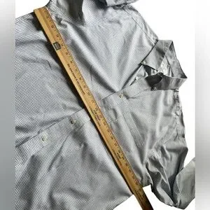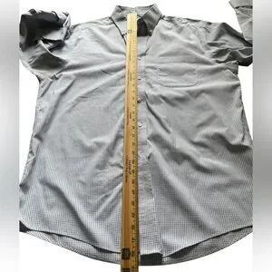 Stylish Brooks shirt with navy and white grid pattern. Ideal for casual outings. Button-down design adds a classic touch. The shirt is in good. Use condition without rips or stains. Measurements are in my photos.