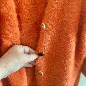 Fun fuzzy oversized sweater. Orange with contrasting buttons. EUC. Naturally fuzzy. Made for Anthropologie.