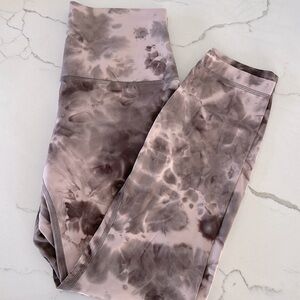 Leggings are in great used condition! They are preowned and have been lightly worn. They are in great shape. No flaws. They are a light pinkish tie dye wash.