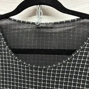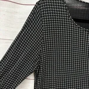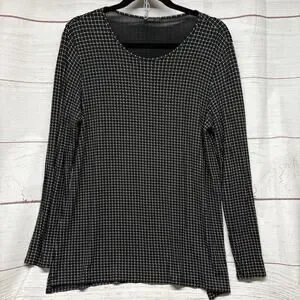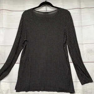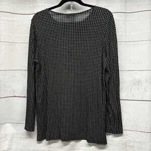 J Jill Wearever Black Grid Print Top Tunic Blouse Shirt Size L