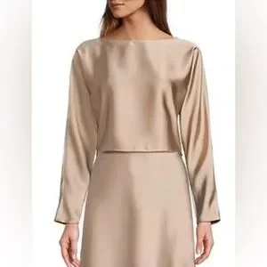 Antonio Melani Blyss Drapey Satin Boat Neck Long Sleeve Champagne Blouse Size L