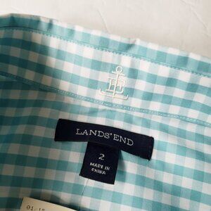 Lands' End Supima Cotton Aqua Gingham 3/4 Sleeve Button Up Shirt Size 2.