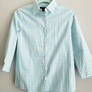Lands' End Supima Cotton Aqua Gingham 3/4 Sleeve Button Up Shirt