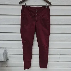 Chic maroon pants with button-up front ( half zip). Perfect for any occasion.