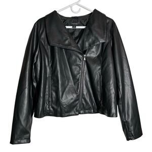 HALOGEN Black Faux Leather Asymmetric Biker Jacket Size XL