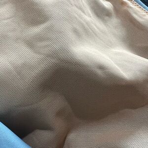 Chic light blue swimsuit with plunge straps. Mesh in cups. Size 10. Great for large or small chests. Barely worn.