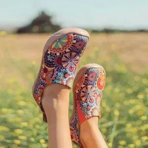 Step into style with these vibrant slip-on shoes. Perfect for adding a pop of color to any outfit. UIN Sz. 8 great condition very comfortable slip-on. Blossom print