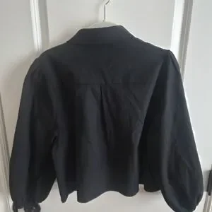 Stay stylish with the Ellandemm Women's Black Jacket with quarter length balloon sleeves. Size L. Perfect for any occasion, this jacket offers a sleek and modern look.