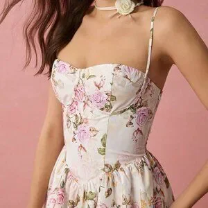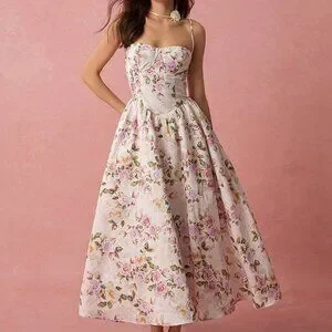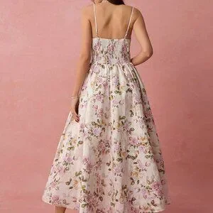 White Boho Women's Romantic Vacation Floral Print Spaghetti Strap A-Line Long Dr