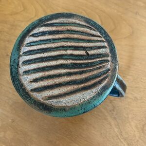 Stunning piece of hand thrown art pottery in glazed blue & brown earthen-tones. A-line shaped mug. Functional beauty!