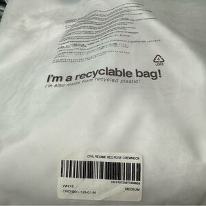 White sweatshirt featuring red floral embroidery on sleeves. Civil Regime branding on front. New with tags and Civil bag. Smoke free dog friendly home. I ship with care and with recycled materials when possible.