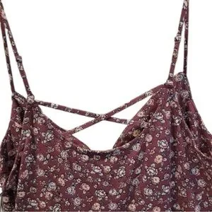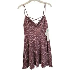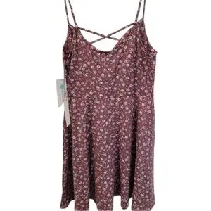 NWT Brushed Cotton Mini dress with adjustable straps. Pretty dark mauve colored floral pattern with a soft v-neckline and flattering skater fit.