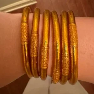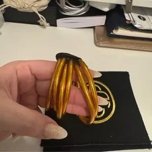 Authentic BuDhaGirl bangles in the color Spark, flame-kissed peach, resembling a dark gold peachy gorgeous color. size Medium , great condition. Please refer to pictures before purchasing or check out the BuDhaGirl website for more information on these bracelets. Pet free and smoke free home. Please dm for questions.
