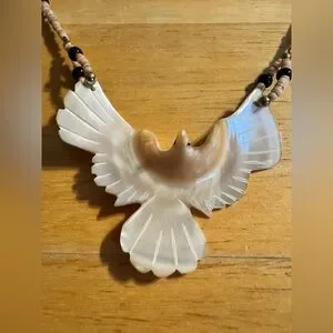 Native Carved Mother of Pearl MOP Bird Shell Necklace