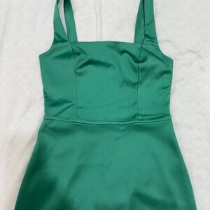 Stunning green midi dress with a chic square neckline and flattering sleeveless design. I wore this once to a wedding and got a TON of compliments—even strangers on the street stopped me to say how much they loved it!