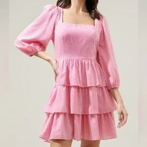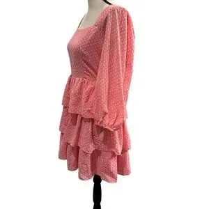 SugarLips Corinne Polka Dot Tiered Mini Dress bell sleeve flowy spring Easter S
