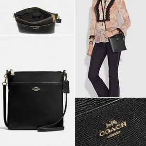Sleek and stylish Coach crossbody. Features a classic black leather design. Ideal for everyday use. Please see pictures for wear on bottom left corner.
