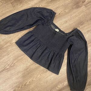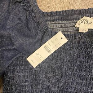 NWT- J crew Blue Smocked Denim / Jean puff sleeve top size L