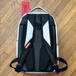 Eye-catching Sprayground backpack with iconic shark design. Features pink and white colors. Ideal for daily use.