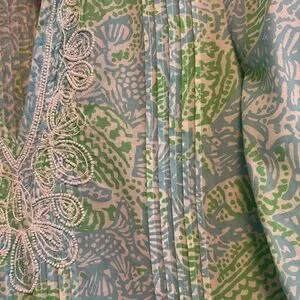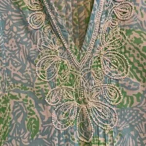 Great condition. Beaded detail around v-neck. 3/4sleeves. Lightweight. 100% cotton.