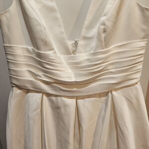 Hi, sorry I missed your offer! Can you confirm that this is the same dress as this one? David's Bridal DB Studio Satin V-Neck Tea Length A-Line Dress STYLE #SDWG0970, are there any flaws, and do you have any pictures of it being worn? Thanks!