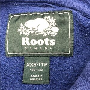 Roots Hoodie with Chenille Logo Patch – Size XXS - Blue/Mustard-Yellow