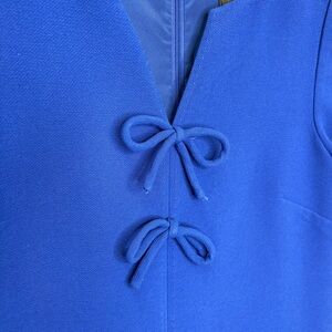 This elegant blue dress features charming bow accents, perfect for any occasion. Its vibrant royal blue color adds a touch of sophistication to your wardrobe.