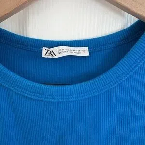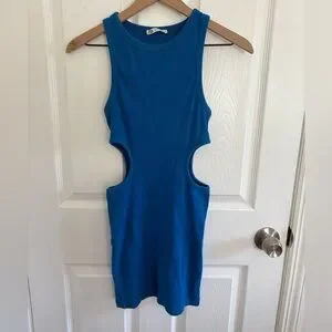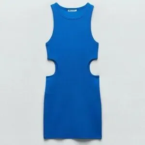 Zara Ribbed Cut Out Blue Mini Dress