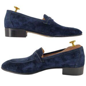 NEW Vintage Pierre Cardin Paris Navy Blue Suede Loafer Mens 10 Italy Dress Shoes