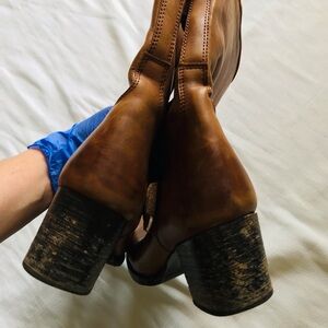 Stylish brown leather ankle boots with buckle detailing. Perfect for a chic, everyday look.