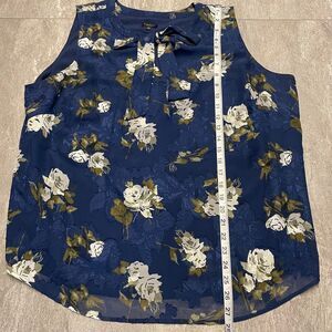 Talbots SZ 2XP Navy Blue Floral Sleeveless Tie Neck Floral Blouse Mature Cottage