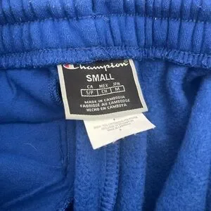 Vibrant blue shorts with bold Champion graphics. Elastic waistband for comfort.