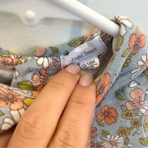 Angel Dear Baby Green Corduroy Pinafore Dress Floral Peter Pan Onesie Bloomer