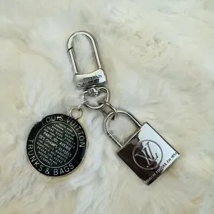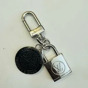 Chic keychain with padlock and round charm. Iconic Louis Vuitton design.
