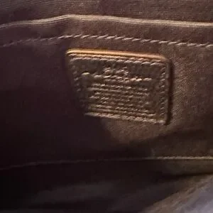 Stylish Coach shoulder bag in blue and black. Features a sleek design with an adjustable strap.