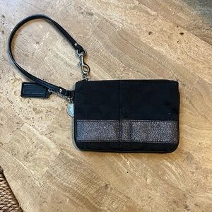 Vintage Coach Jacquard Logo Signature Shimmery Silver Metallic Stripe Wristlet EUC