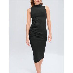Women High Neck Sleeveless Bodycon Ruched Dress Black