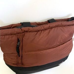 The North Face Nuptse Tote Puffer Travel Bag Overnight Laptop Diaper Weekend. In excellent preloved condition. Color is dark oak