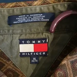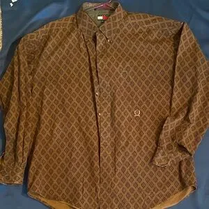 90sTommy Hilfiger Men's Brown Geometric Shirt Xl