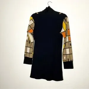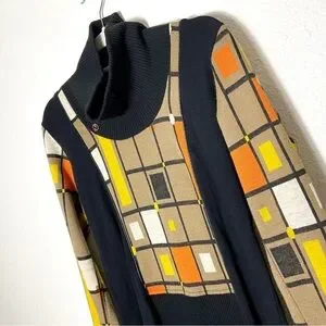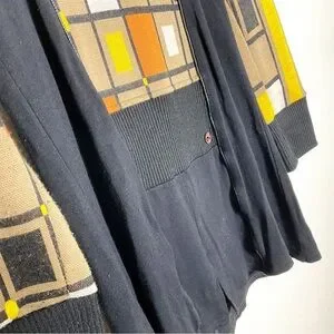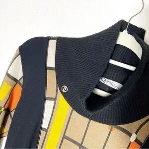 This artsy sweater will bring sophistication anywhere you go. The lightweight and flattering drape effect of this sweater will only accentuate your silhouette beautifully like the unique masterpiece that it is!! ***EXCELLENT PRE-LOVED CONDITION!!*** Zipper at the bottom, mock neck, and button details.